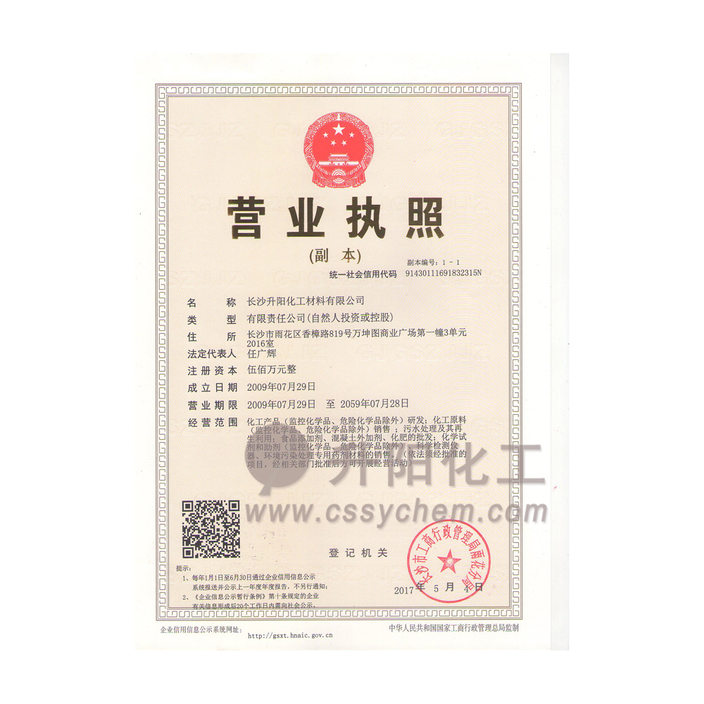 長(zhǎng)沙升陽化工材料有限公司成立于2009年,是一家已經(jīng)擁有10年化工原料經(jīng)營(yíng)歷史的企業(yè)。我們本著“服務(wù)至上,以誠為本”的原則,為廣大的新老客戶提供最優(yōu)質(zhì)的產(chǎn)品、最便捷的服務(wù)。歷經(jīng)10多年的積淀與發(fā)展,現(xiàn)已成長(zhǎng)為湖南省頗具規(guī)模的專業(yè)化學(xué)品服務(wù)供應(yīng)商之一。?公司集貿(mào)易,科研,倉儲(chǔ),物流為