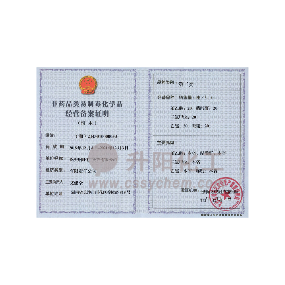 我公司具有危險(xiǎn)化學(xué)品經(jīng)營(yíng)許可證,易制毒和易制爆的經(jīng)營(yíng)許可,現(xiàn)經(jīng)營(yíng)銷售第二類、第三類易制毒,易制爆等危險(xiǎn)化學(xué)品,我司對(duì)危險(xiǎn)品購買嚴(yán)格按照國家規(guī)定實(shí)施,對(duì)所有易制毒,易制爆等一律不對(duì)個(gè)人銷售。客戶購買以上危險(xiǎn)化學(xué)品,需要提供相關(guān)公司資質(zhì)及備案資料,待我司審核后方可購買,具體說明如下:購買手續(xù):一、易制毒